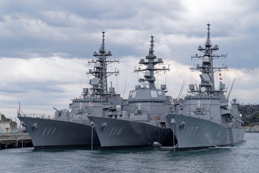 这是2024年3月20日在日本神奈川县横须贺市拍摄的一艘停泊在横须贺基地的日本海上自卫队护卫舰。新华社记者张晓宇 摄