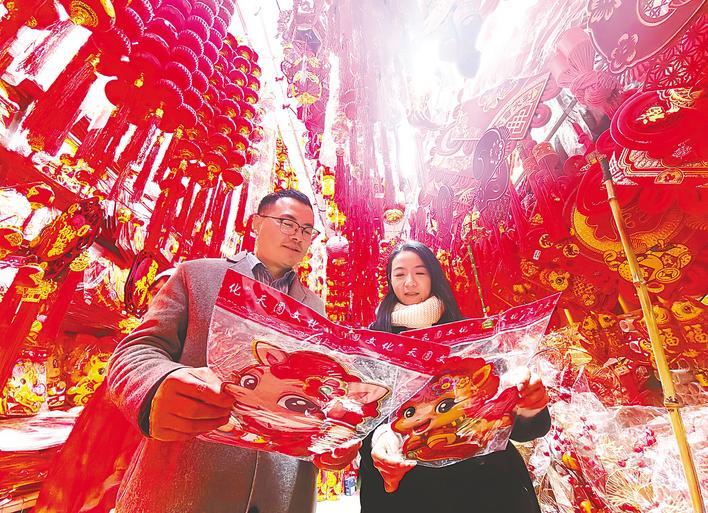 新年“马”饰品发售 2025-12-24 12月22日,武汉汉正街小商品批发市场沿线商铺里挂满了红灯笼、春联等商品。 “马到成功”主题挂件、非物质文化遗产马元素剪纸、卡通马等带有生肖元素的节日配饰颇受欢迎。 (湖北日报全媒体记者 陈吉 摄)
